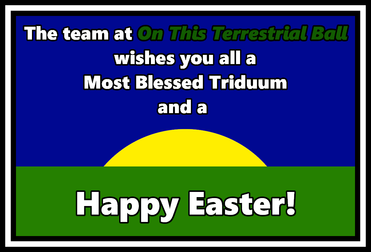 We thank you for your continued loyalty and understanding. The entire team at “On This Terrestrial Ball” wishes you all a Blessed Triduum and a Happy Easter.
